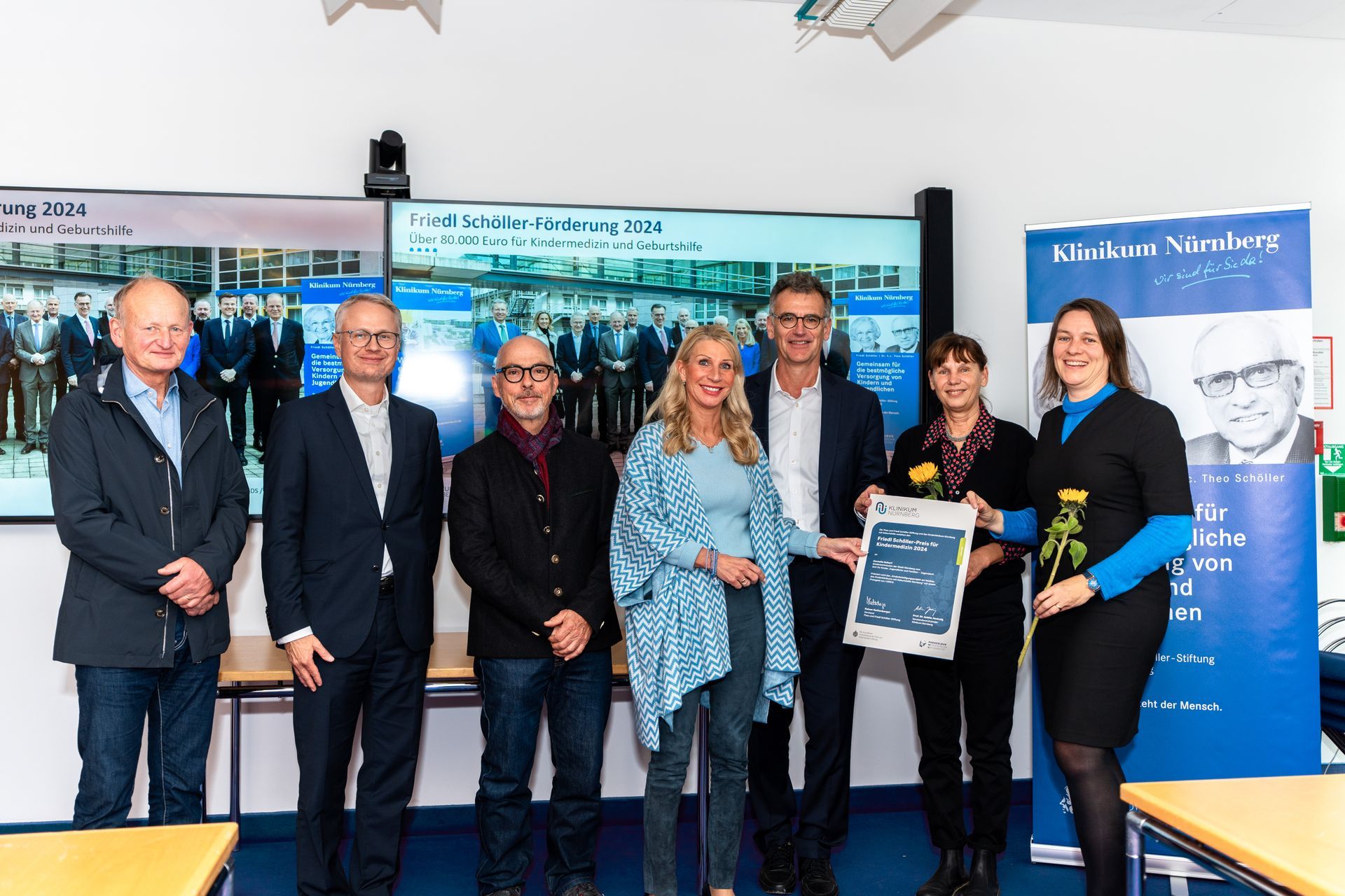 Titelbild: Gruppenbild mit allen Preisträgerinnen und Preisträgern: Die Theo und Friedl Schöller-Stiftung stellt für verschiedene kindermedizinische Projekte ein Budget von 80.000 Euro zur Verfügung.